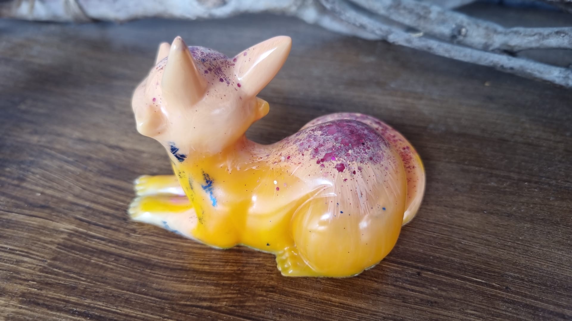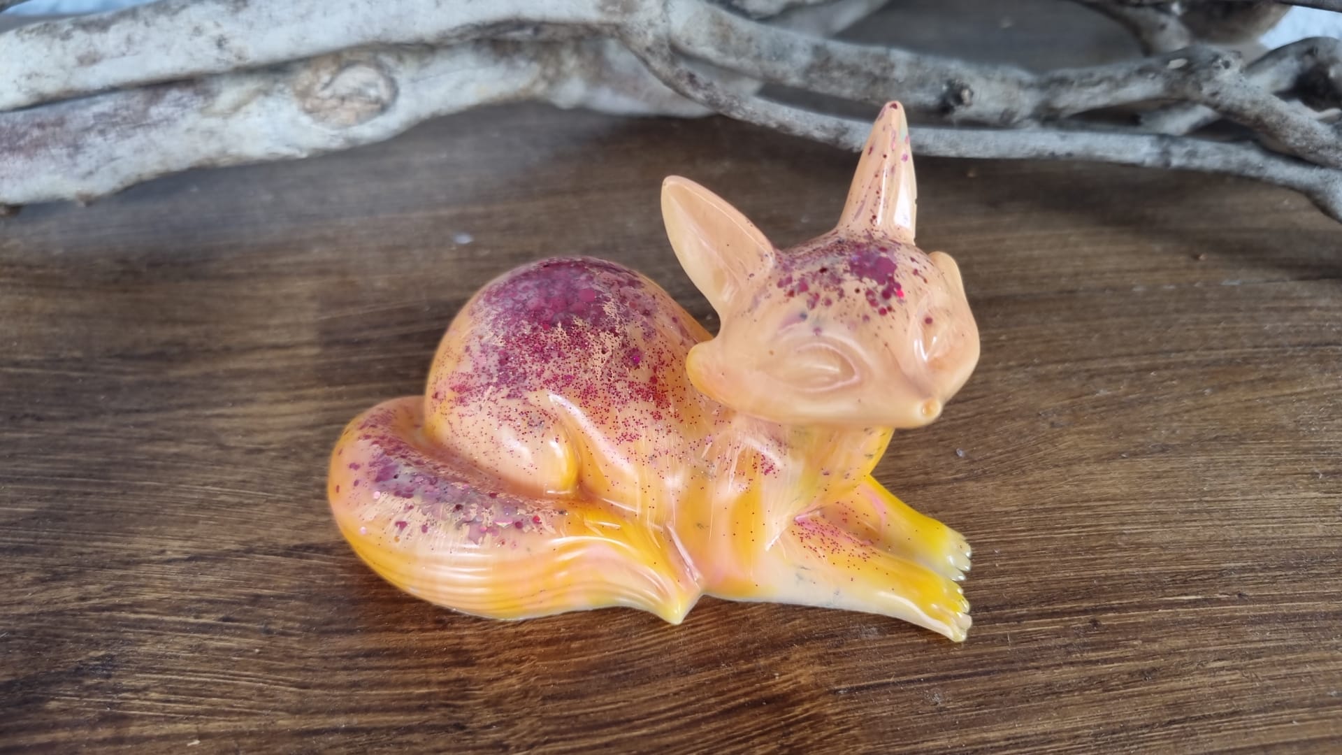Dieser entspannt liegendeFuchs wurde aus Epoxidharz hergestellt.