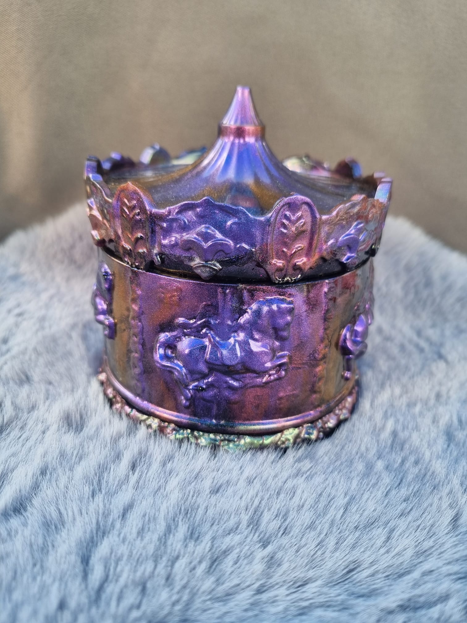 Diese wunderschönen Karusselldosen mit Pferdemotiv erinnern uns an einen Jahrmarktbesuch mit vielen Attraktionen und sußen Düften.
