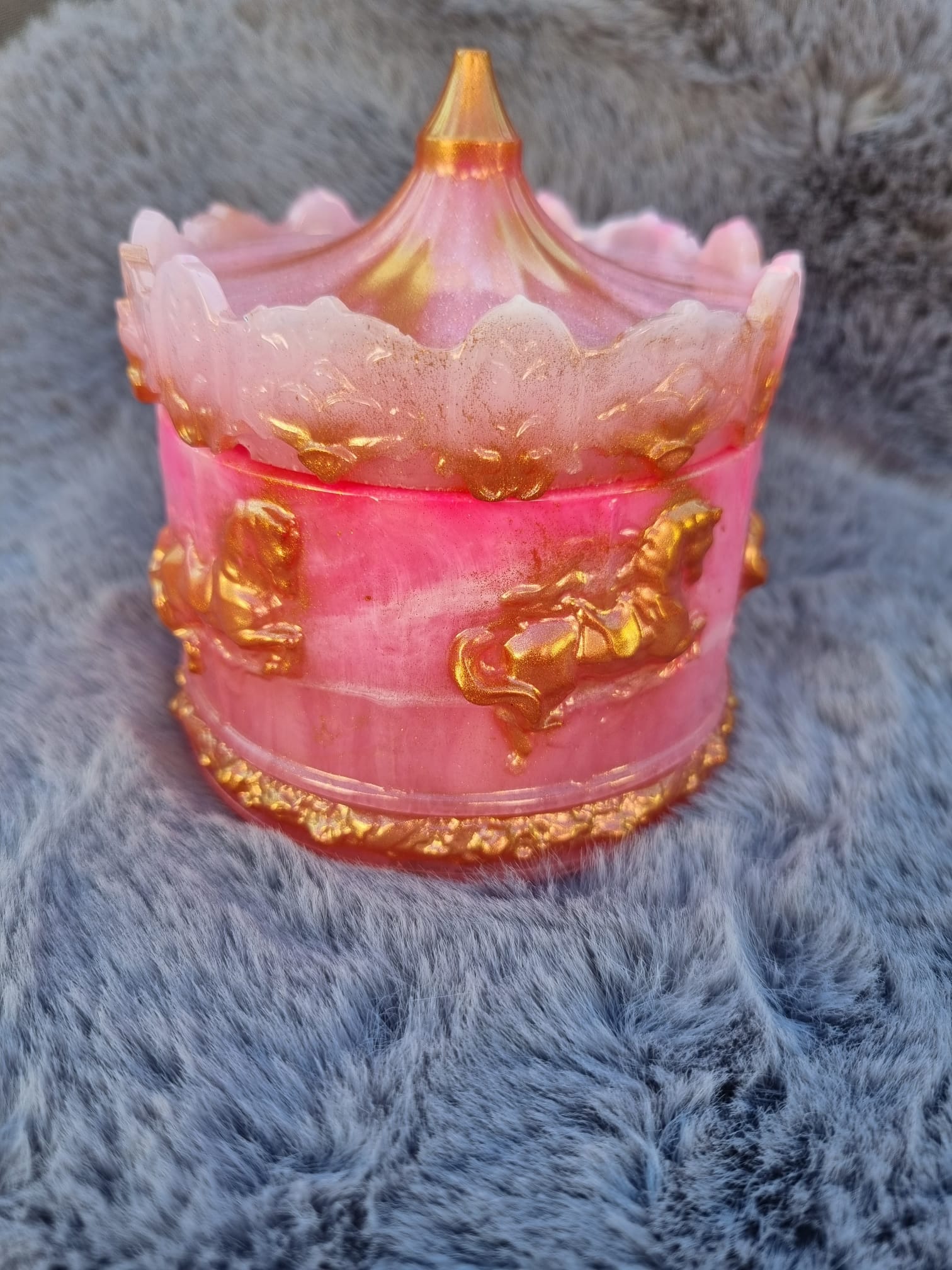 Diese wunderschönen Karusselldosen mit Pferdemotiv erinnern uns an einen Jahrmarktbesuch mit vielen Attraktionen und sußen Düften.