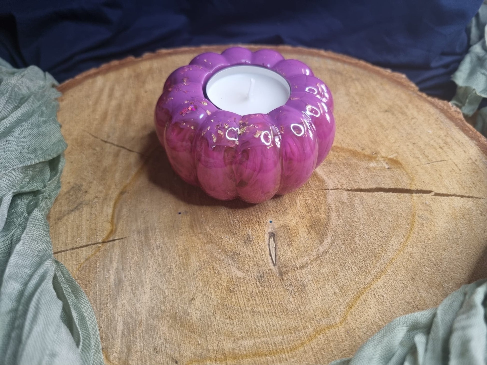 Kürbis Teelichthalter aus Epoxidharz hergestellt.