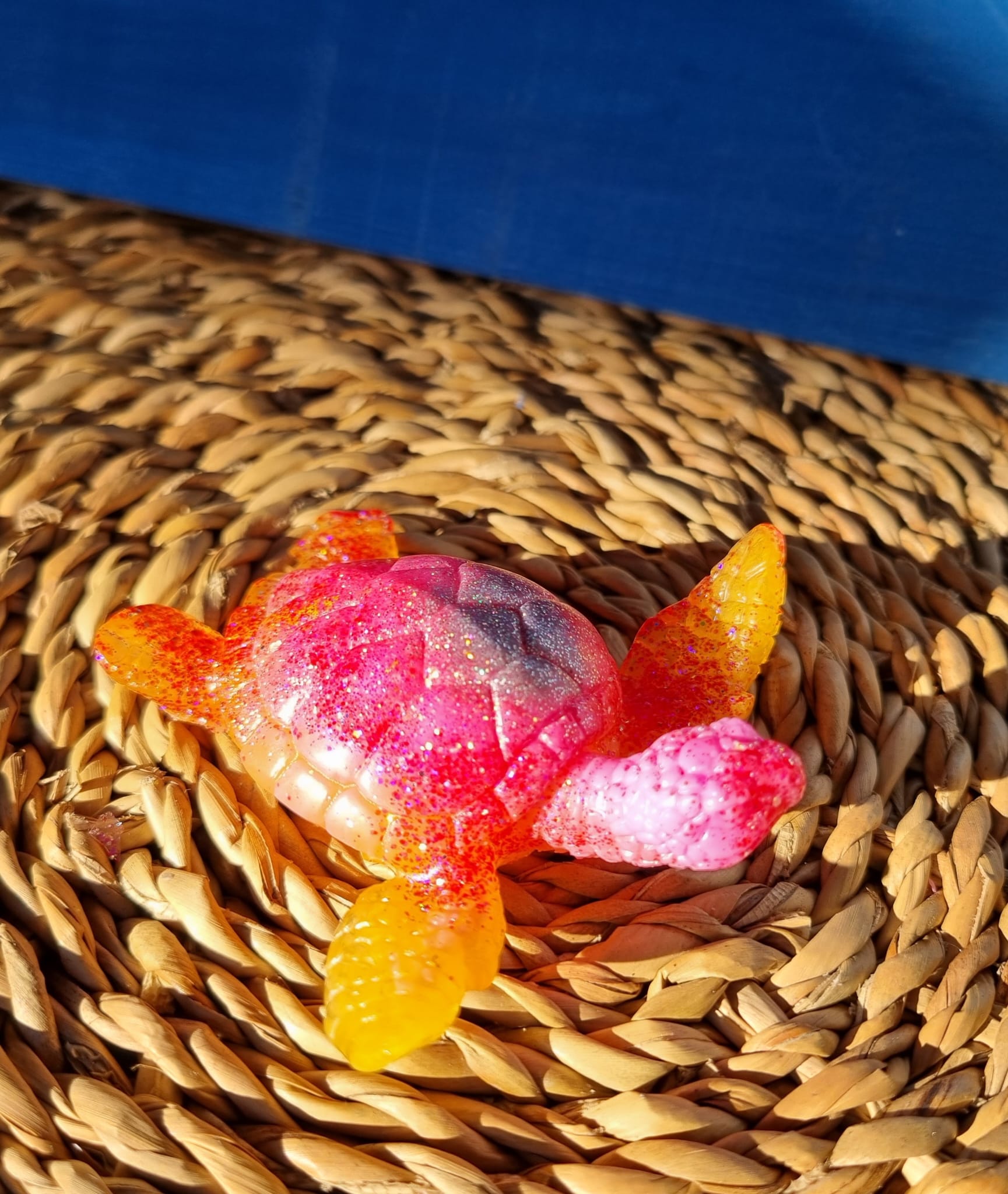 Die Schildkröten schimmern in allen möglichen Farbverläufen und regen uns zum träumen an.
