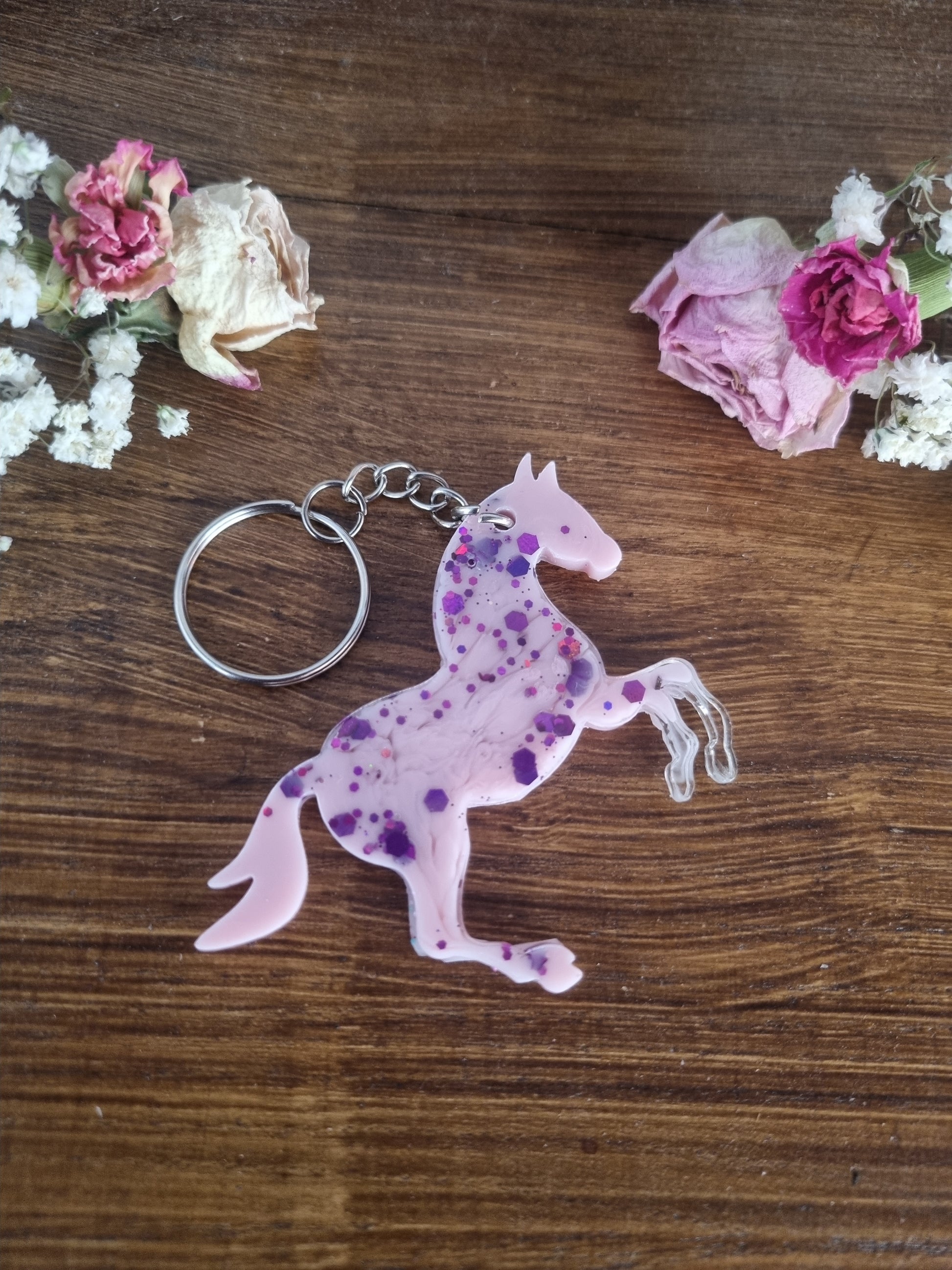 Der Schlüsselanhänger Pferd wurde aus Epoxidharz hergestellt.