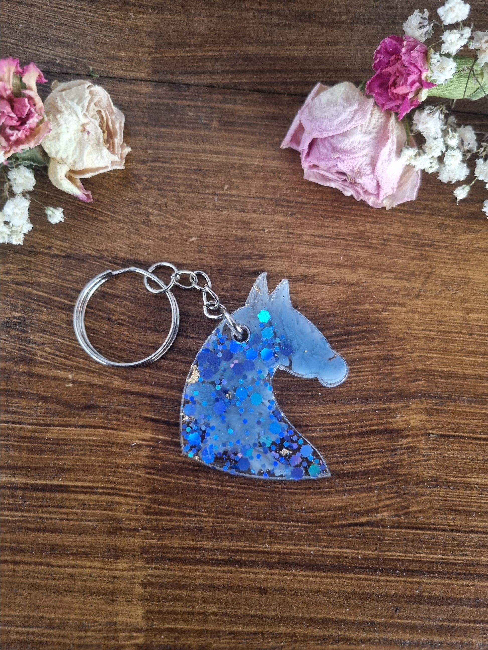 Schlüsselanhänger Pferdekopf aus Epoxidharz hergestellt.