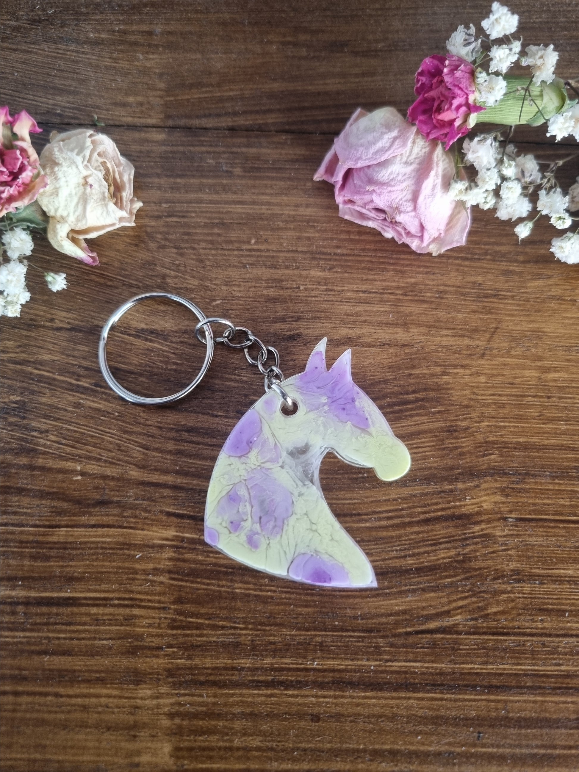 Schlüsselanhänger Pferdekopf aus Epoxidharz hergestellt.