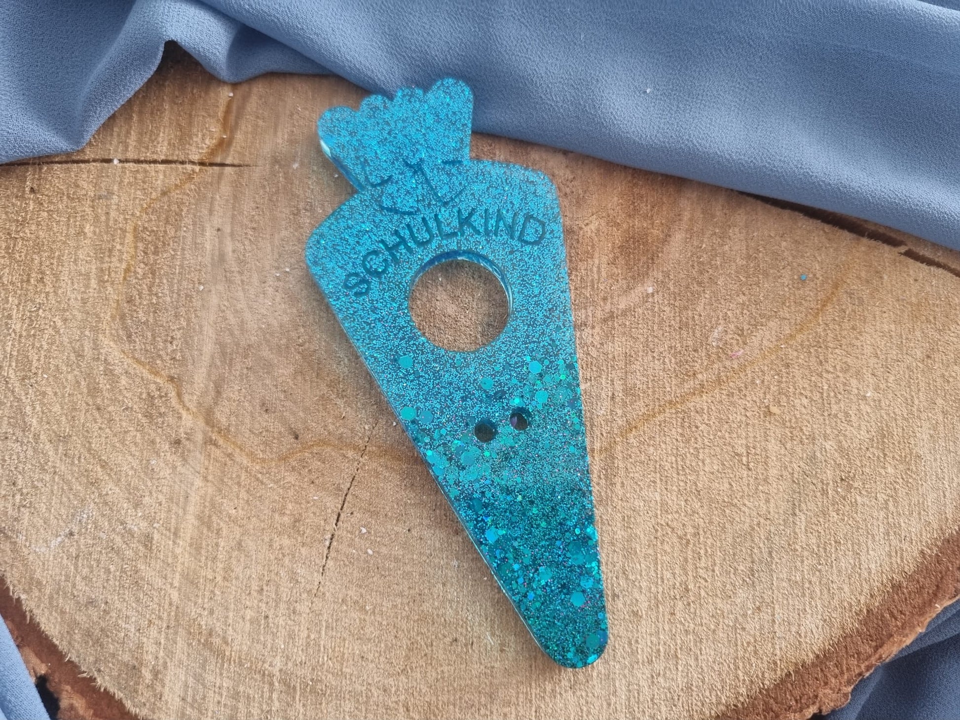 Diese kleine Schultüte mit Aussparung für einen Lutscher(siehe Beispielfoto ),aus Epoxidharz hergestellt.
