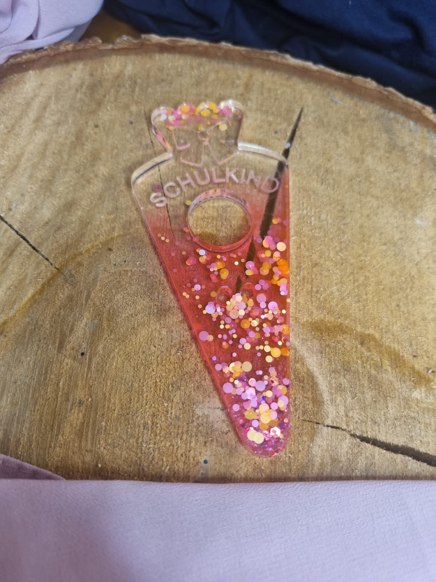 Süße kleine Schultüte mit Aussparung für einen Lutscher(siehe Beispielfoto), aus Epoxidharz hergestellt.