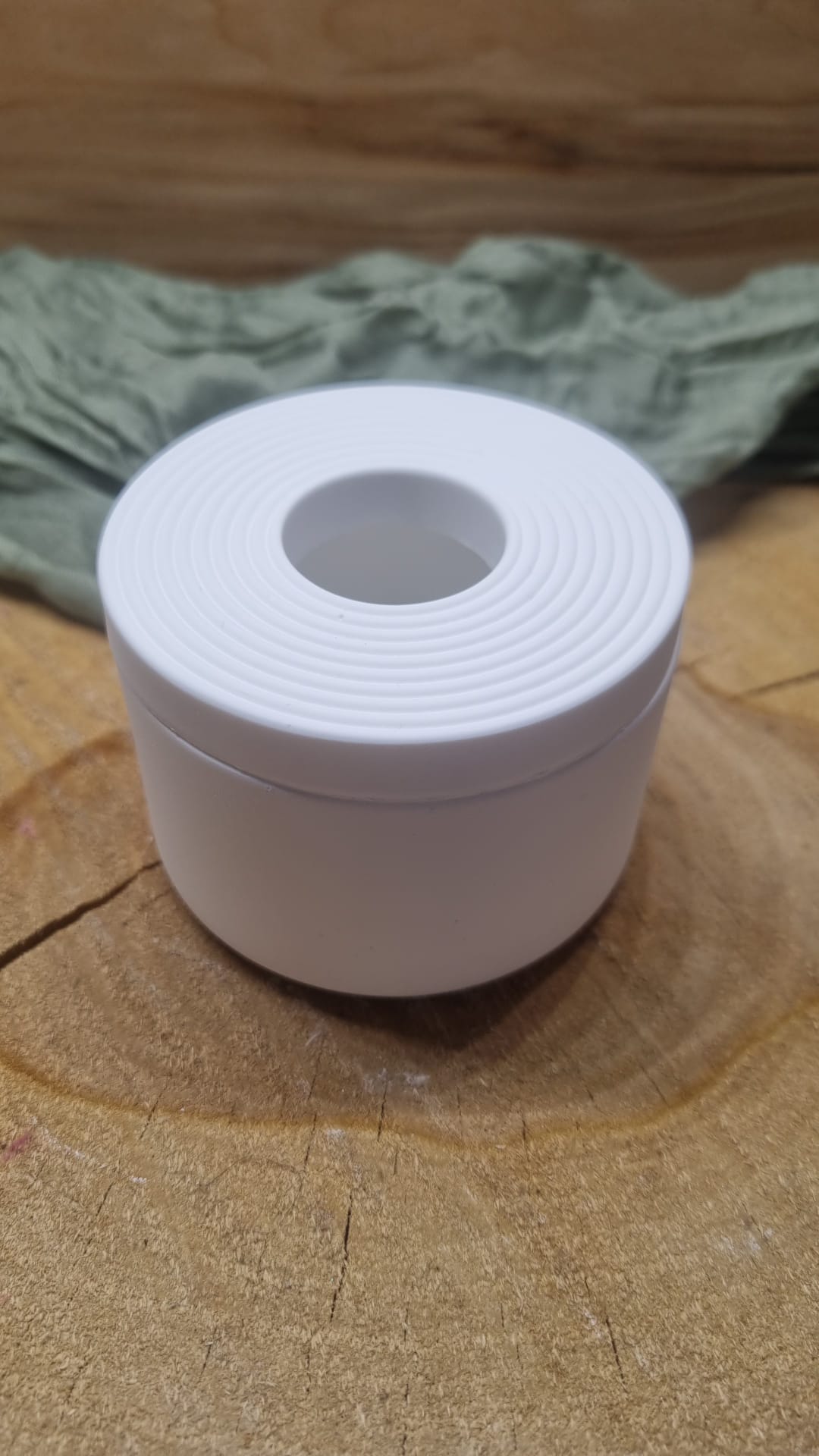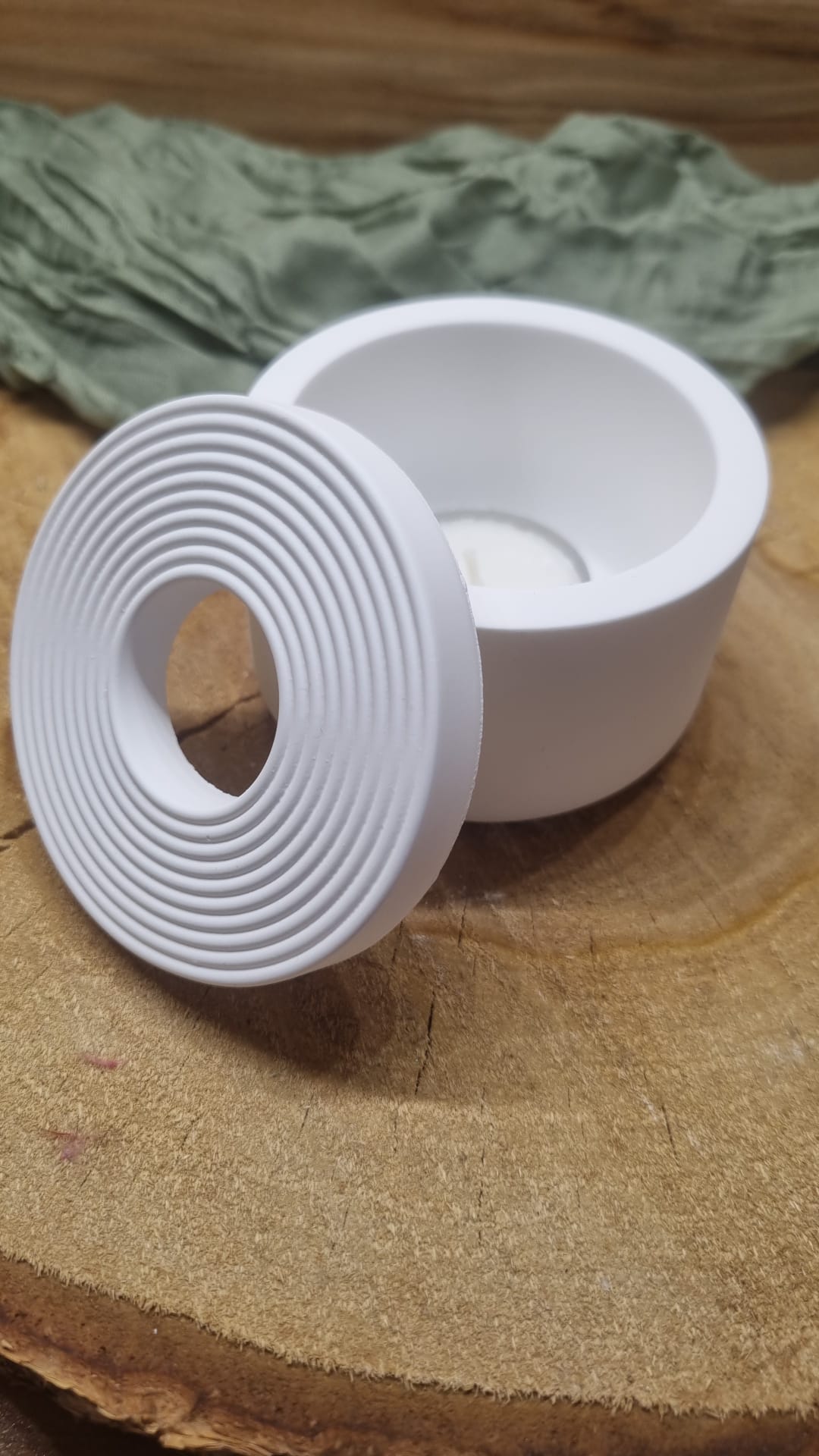 Dieser wunderschöne und schlichte Teelichthalter kommt mit einem ebenfalls schlicht gehaltenem Deckel zu Euch.